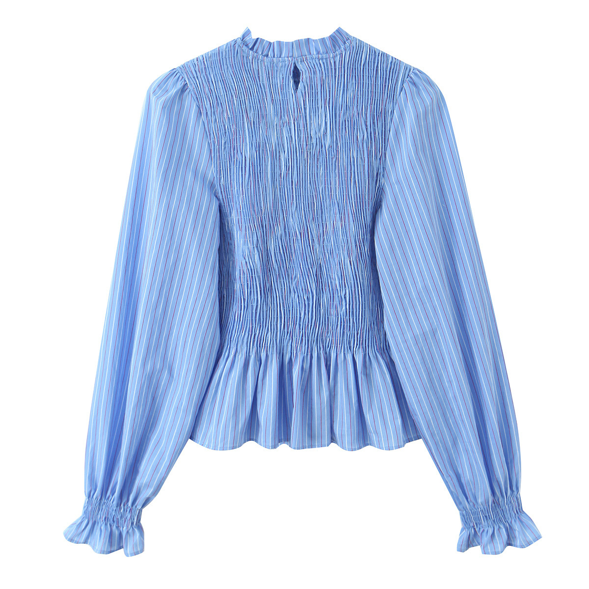 Versatile Honeycomb Check Shirt Top - Sky Blue Stripes / XS