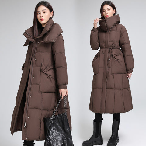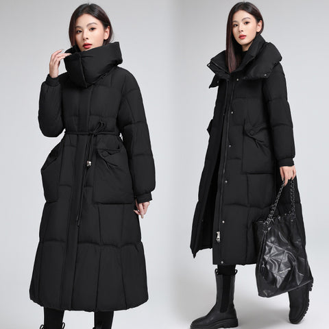 Knee-length Warm Cotton Coat Loose Thicken Waist-cinching Padded Jacket Sale